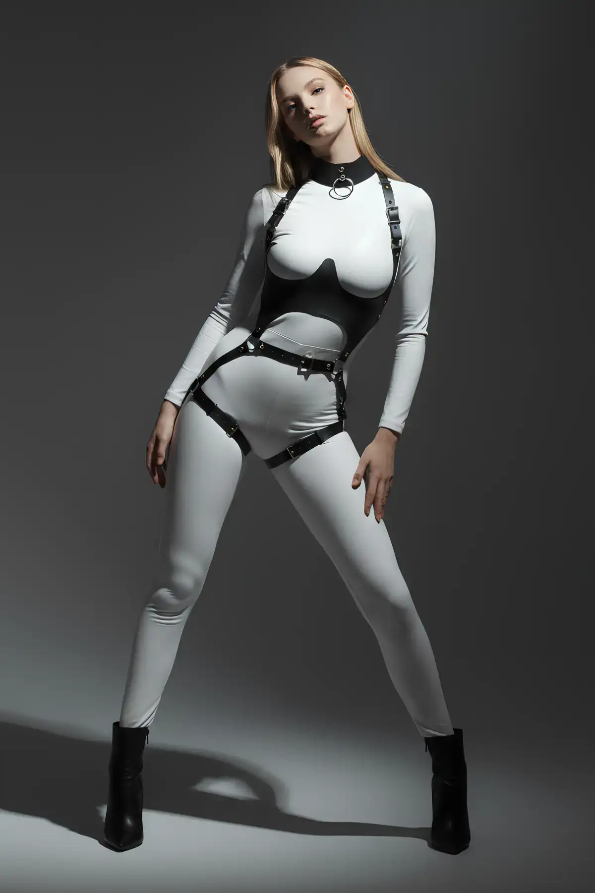 Deri Harness, Göğüs Altı Destekli Harness Takım, Deri Dansçı Kostüm – APFT1402
